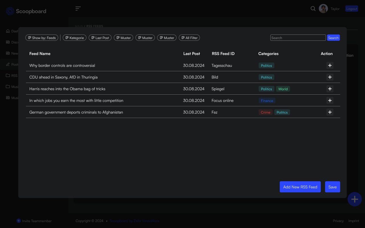 Implement you favourite website as a Newssource at Scoopboard and filter smart for your favourite topics